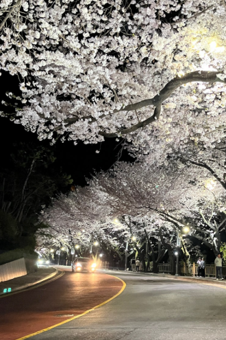 해운대 바닷가를 따라 언덕길을 오르면 펼쳐지는 벚꽃길! 광안대교와 해운대의 야경을 감상할 수 있어 밤에 가도 아주 멋진 곳입니다.